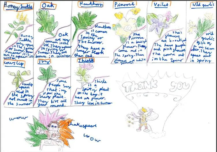 In February Year 5 completed the ‘Shakespeare Challenge’ and found many plants mentioned in A Midsummer Night’s Dream!